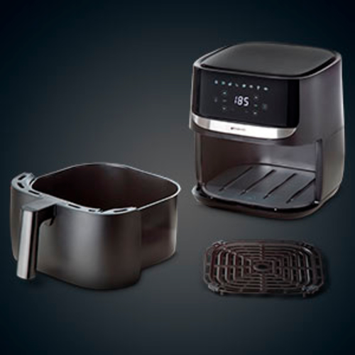 Hauptmerkmale Leistungen Produkttyp Heißluftfritteuse Fassungsvermögen 5,7 l Friteusenkapazität 0,6 kg Bratfunktion Ja Backfunktion Ja Anzahl der Programme 8 Grillen Ja Regelbare Temperatur Ja Voreingestellte Kochprogramme Ja Digital-Zeitmesser Ja Design Bauart Einzelbild Produktfarbe Schwarz Entfernbare Schüssel Ja Steuerung Berührung Geräteplatzierung Eigenständig Material Kunststoff Einfach zu säubern Ja Anzeige Eingebautes Display Ja Energie Leistung 1700 W Gewicht und Abmessungen Breite 345 mm Tiefe 284 mm Höhe 300 mm