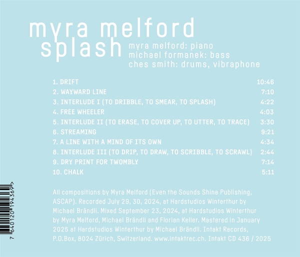 Beschreibung:"Myra Melford Splash" ist eine faszinierende CD-Veröffentlichung der renommierten Pianistin und Komponistin Myra Melford zusammen mit dem dynamischen Ensemble Splash um Michael Formanek und Ches Smith. Das Album erscheint bei Intakt Records und präsentiert eindrucksvoll Melfords innovativen Zugang zum Jazzpiano ? komplexe Kompositionen treffen auf spontane Improvisationen. Die Interaktion der Musiker erschafft ein lebendiges Klangbild voller Energie und Kreativität im zeitgenössischen Jazz-Kontext. Myra Melford wurde für ihren experimentellen Geist vielfach ausgezeichnet; sie erhielt unter anderem ein Guggenheim-Stipendium sowie mehrere Preise beim DownBeat Critics Poll. Ihre Zusammenarbeit mit Größen des modernen Jazz macht jedes ihrer Projekte zu einem Ereignis in der internationalen Musikszene. Das Label Intakt Records steht für höchste Qualität im Bereich Avantgarde- und Progressive-Jazz-Aufnahmen und unterstützt seit Jahren kreative Künstlerpersönlichkeiten.