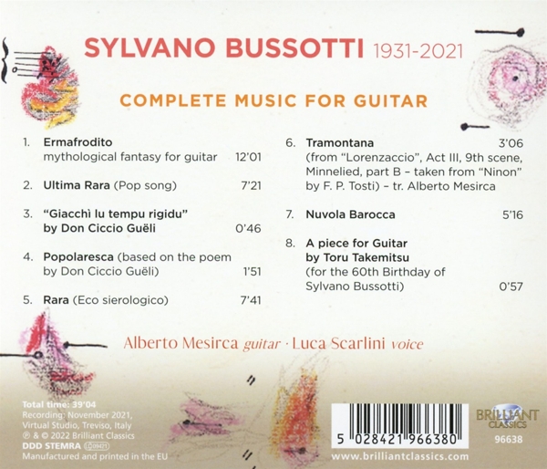 01. Mesirca, Alberto "Ermafrodito (Mythologische Fantasie für Gitarre)" 02. Scarlini, Luca "Ultima Rara (Pop song)" 03. Scarlini, Luca "Giacch lu tempu rigidu (nach einem Gedicht von Don Cicio Gu?li)" 04. Scarlini, Luca "Popolaresca (nach einem Gedicht von Don Cicio Gu?li)" 05. Scarlini, Luca "Rara (Eco sierologico)" 06. Scarlini, Luca "Tramontana" 07. Scarlini, Luca "Nuvola Barocca" 08. Scarlini, Luca "Stück für Gitarre (zum 60. Geburtstag Sylvano Bussottis)"