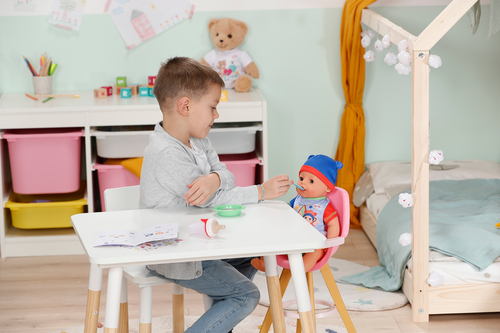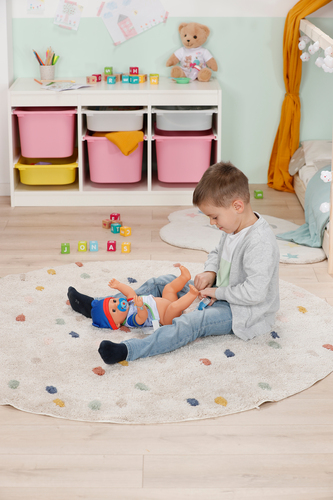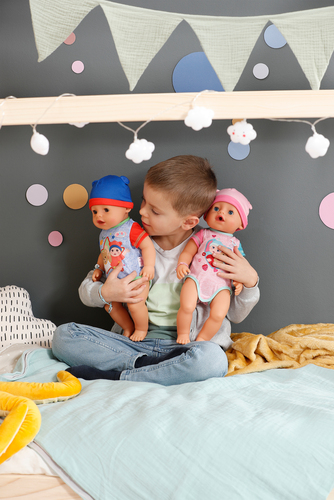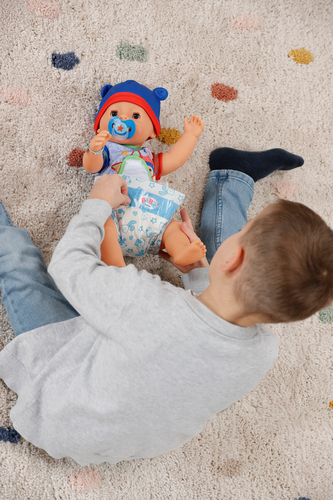 | | Beschreibung: | O-Titel: BABY born Jonas 43cmTyp/Warengruppe: BABY BORNHersteller-Nr.: 834848Gewicht: 1745 gAbmasse: 18x29x39 cmAltersempfehlung ab: 3 Jahr(e)Altersfreigabe: 3 Jahr(e)Beschreibung: Hier kommt Jonas! Bereits bekannt aus der BABY born Animationsserie, welche auf YouTube und Toggo zu sehen ist, gibt es Jonas jetzt auch in seinem neuen Outfit und mit 10 Accessoires für euch zu Hause. Mit dabei hat er auch seinen magischen Teller: gibt man Wasser auf die Einlege- Fläche im Teller, erscheinen dort durch den Wasserzauber leckere Gerichte, die das Fütterspiel noch spannender machen. Setzt man ihn nach dem gespielten Essen (mit Wasser) oder Trinken auf ihr Töpfchen und drückt ihm auf den Bauch, erscheinen auch dort sein kleines und ihr großes Geschäft. Trinkt Jonas Wasser aus seinem Fläschchen, kann er sogar weinen und muss behutsam getröstet werden. Dabei hilft der magische Schnuller: dreht man ihn um 180 Grad, schließen oder öffnen sich seine Augen. Nochmal gedreht und das Gegenteil passiert. Legt man ihn zum Schlafen ins Bettchen, schließt sie ihre Augen auch ohne Schnuller. Doch Jonas kann noch viel mehr: Er ist super beweglich und kann sogar mit in die Badwanne genommen werden, denn er trocknet jetzt noch schneller: Um die Puppe nach dem Spiel richtig zu reinigen, kann das Bein entfernt werden, um eine größere Öffnung für die Reinigung zu schaffen. Wasser kann so viel einfacher abfließen. Für noch mehr kreatives Spiel bringt Jonas neben seinem Fläschchen, Schnuller, Teller, Löffelchen, Mahlzeiten und Töpfchen auch noch eine Windel, seinem Geburtspass und zwei Freundschaftsarmbändchen mit ? für eine lange und liebevolle Freundschaft zwischen Kind und Puppe. In der gewohnten BABY born Qualität, die Generationen von Kindern seit 1991 begeistert. ? Kann trinken, schlafen, weinen, baden und in die Windel machen ? Durch den Fütterzauber erscheint sein Lieblingsessen bei Wasserkontakt im Tellerchen ? Auch das große und kleine Geschäft erscheinen auf magische Weise im Töpfchen ? Schließt und öffnet die Augen mit Schnuller-Drehung ? Mit 10 Accessoires Zusatzbeschreibung: Kann trinken, schlafen, weinen, baden und in die Windel machen . Durch den Fütterzauber erscheint sein Lieblingsessen bei Wasserkontakt im Tellerchen. Auch das große und kleine Geschäft erscheinen auf magische Weise im Töpfchen. Schließt und öffnet die Augen mit Schnuller-Drehung. Mit 10 Accessoires. Warnhinweis: Hier kommt Jonas! Bereits bekannt aus der BABY born Animationsserie, welche auf YouTube und Toggo zu sehen ist, gibt es Jonas jetzt auch in seinem neuen Outfit und mit 10 Accessoires für euch zu Hause. Mit dabei hat er auch seinen magischen Teller: gibt man Wasser auf die Einlege- Fläche im Teller, erscheinen dort durch den Wasserzauber leckere Gerichte, die das Fütterspiel noch spannender machen. Setzt man ihn nach dem gespielten Essen (mit Wasser) oder Trinken auf ihr Töpfchen und drückt ihm auf den Bauch, erscheinen auch dort sein kleines und ihr großes Geschäft. Trinkt Jonas Wasser aus seinem Fläschchen, kann er sogar weinen und muss behutsam getröstet werden. Dabei hilft der magische Schnuller: dreht man ihn um 180 Grad, schließen oder öffnen sich seine Augen. Nochmal gedreht und das Gegenteil passiert. Legt man ihn zum Schlafen ins Bettchen, schließt sie ihre Augen auch ohne Schnuller. Doch Jonas kann noch viel mehr: Er ist super beweglich und kann sogar mit in die Badwanne genommen werden, denn er trocknet jetzt noch schneller: Um die Puppe nach dem Spiel richtig zu reinigen, kann das Bein entfernt werden, um eine größere Öffnung für die Reinigung zu schaffen. Wasser kann so viel einfacher abfließen. Für noch mehr kreatives Spiel bringt Jonas neben seinem Fläschchen, Schnuller, Teller, Löffelchen, Mahlzeiten und Töpfchen auch noch eine Windel, seinem Geburtspass und zwei Freundschaftsarmbändchen mit ? für eine lange und liebevolle Freundschaft zwischen Kind und Puppe. In der gewohnten BABY born Qualität, die Generationen von Kindern seit 1991 begeistert. ? Kann trinken, schlafen, weinen, baden und in die Windel machen ? Durch den Fütterzauber erscheint sein Lieblingsessen bei Wasserkontakt im Tellerchen ? Auch das große und kleine Geschäft erscheinen auf magische Weise im Töpfchen ? Schließt und öffnet die Augen mit Schnuller-Drehung ? Mit 10 Accessoires Sprache Gebrauchsanleitung: CS DE ES FR GB IT NL PL RUArtikel-Serie/Marke: BABY born®Batterie erforderlich: NeinHerkunft: CNHersteller: MGA Zapf Creation GmbHBABY born Jonas 43cm von der Mga Zapf Creation GmbH ist eine lebensechte Babypuppe und fördert fantasievolles Spielen sowie Empathie bei Kindern. Mit einer Größe von 43 cm verfügt Jonas über realistische Funktionen wie das Weinen echter Tränen, das Trinken aus der Flasche oder das Nässen der Windel sowie bewegliche Gliedmaßen für interaktives Rollenspiel. Zum Set gehören meist Zubehörteile wie Fläschchen, Schnuller, Teller mit Löffel, Töpfchen, Windel sowie Geburtsurkunde und Freundschaftsbändchen dazu. Die Puppe eignet sich für Kinder ab drei Jahren und benötigt keine Batterien für die Grundfunktionen. Das Produkt unterstützt die Entwicklung sozialer Kompetenzen durch nachgespielte Eltern-Kind-Situationen und fördert zudem feinmotorische Fähigkeiten beim An- oder Ausziehen bzw. Füttern der Puppe. Die Mga Zapf Creation GmbH steht seit Jahrzehnten für qualitativ hochwertiges Spielzeug mit kreativen Ansätzen; nachhaltige Maßnahmen wie umweltfreundliche Verpackungen und ressourcenschonende Produktionsprozesse sind fester Bestandteil des Unternehmenskonzepts zur Reduzierung ökologischer Auswirkungen geworden ? Ihr Kauf trägt somit aktiv zu mehr Nachhaltigkeit bei. |  | | Mindestalter: |