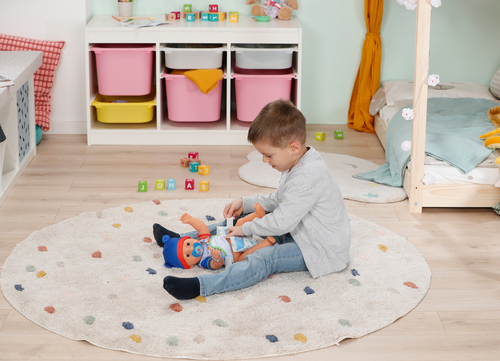 Verpackungsdaten | | Verpackungsbreite | 290 mm | | Verpackungstiefe | 180 mm | | Verpackungshöhe | 390 mm | | Verpackungsart | Offener Kasten | Merkmale | | Produktfarbe | Mehrfarbig | | Puppentyp | Babypuppe | | Puppen Geschlecht | Männlich | | Empfohlenes Alter in Jahren (mind.) | 3 Jahr(e) | | Abnehmbares Kleid | Ja | | Vorgeschlagenes Geschlecht | Junge/Mädchen | | Empfohlene Altersgruppe | Kind | | Empfohlenes Alter in Jahren (max.) | 12 Jahr(e) | | Material(ien) | Kunststoff, Textil | Logistikdaten | | Breite des Versandkartons | 509 mm | | Länge des Versandkartons | 422 mm | | Höhe des Versandkartons | 379 mm | Lern- und Übungsfähigkeiten | | Fantasievolles Spielen | Ja | Gewicht und Abmessungen | | Höhe | 430 mm | Akku/Batterie | | Batterien erforderlich | Nein |