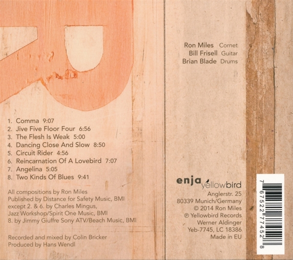 Cornet: Ron Miles, Drums: Brian Blade, Executive-Producer: Werner Aldinger, Guitar: Bill Frisell, Producer: Hans Wendl, Labelcode 1077452EY1 (yeb-7745)