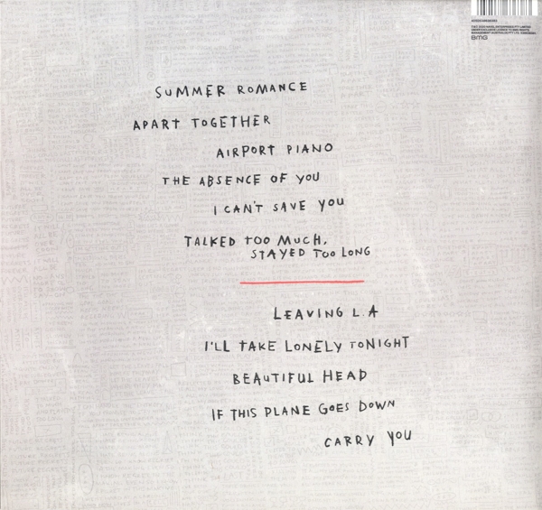 01. "Summer romance" 02. "Apart together" 03. "Airport piano" 04. "The absence of you" 05. "I can't save you" 06. "Talked too much, stayed too long" 07. "Leaving L.A." 08. "I'll take lonely tonight" 09. "Beautiful head" 10. "If this plane goes down" 11. "Carry you"