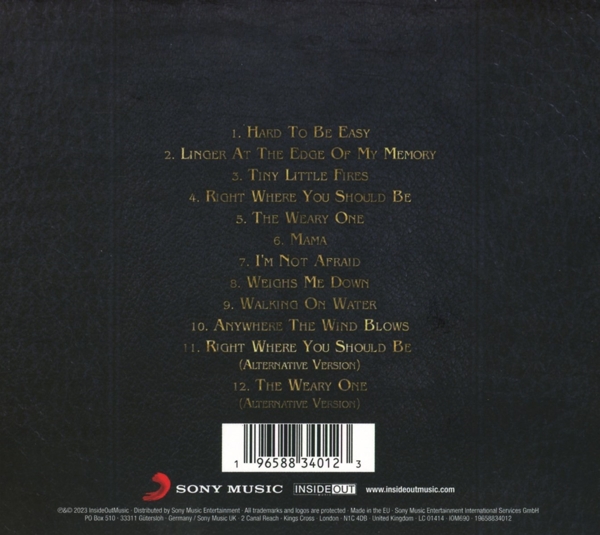 1. HARD TO BE EASY 2. LINGER AT THE EDGE OF MY MEMORY 3. TINY LITTLE FIRES 4. RIGHT WHERE YOU SHOULD BE 5. THE WEARY ONE 6. MAMA 7. I'M NOT AFRAID 8. WEIGHS ME DOWN 9. WALKING ON WATER 10. ANYWHERE THE WIND BLOWS 11. RIGHT WHERE YOU SHOULD BE (ALTERNATIVE VERSION) 12. THE WEARY ONE (ALTERNATIVE VERSION)