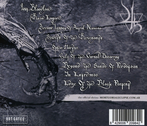 01. "Lost bloodline" 02. "Ruin empire" 03. "Arcane legady of astral numina" 04. "Screts of the ravenants" 05. "Ophis Mártys" 06. "Cult of the carnal disrray" 07. "Beyond the sands of perdition" 08. "In extremis" 09. "Edge of the black portent"