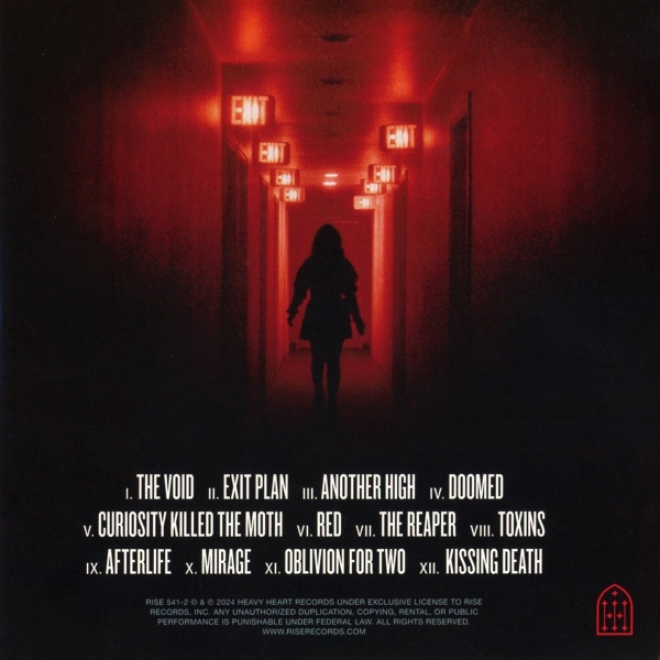 01. "The Void" 02. "Exit Plan" 03. "Another High" 04. "Doomed" 05. "Curiosity Killed the Moth" 06. "Red" 07. "The Reaper" 08. "Toxins" 09. "Afterlife" 10. "Mirage" 11. "Oblivion for Two" 12. "Kissing Death"