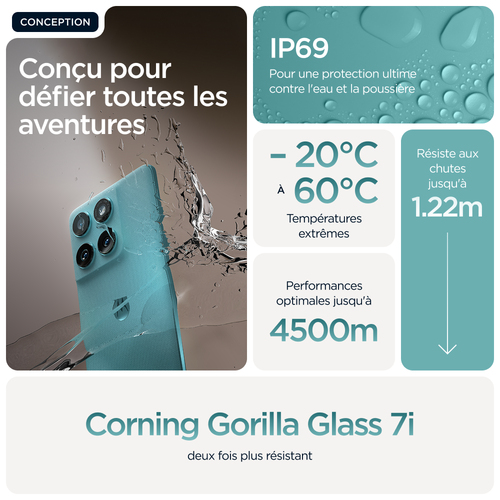 Speichermedium | | RAM-Kapazität | 8 GB | | Interne Speicherkapazität | 256 GB | | Kompatible Speicherkarten | MicroSD (TransFlash) | | RAM-Typ | LPDDR4X | | Max. Speicherkartengröße | 1 TB | Software | | Plattform | Android | | Installiertes Betriebssystem | Android 15 | | Virtueller Assistent | Google Assistant | Sensoren | | Annäherungssensor | Ja | | Beschleunigungsmesser | Ja | | Umgebungslichtsensor | Ja | | Gyroskop | Ja | | Gesten-Sensor | Ja | Prozessor(en) | | Prozessorfamilie | MediaTek Dimensity | | Prozessor(en) | 7300 | Netzwerk | | SIM-Kartensteckplätze | Dual-SIM | | Mobilfunknetzgenerierung | 5G | | SIM-Kartentyp | NanoSIM + eSIM | | 3G-Standards | CDMA, HSPA+, UMTS, WCDMA | | 4G-Standards | LTE | | 5G-Standard | NR, Sub6 | | Top WLAN-Standard | Wi-Fi 6 (802.11ax) | | Bluetooth | Ja | | 2G-Standards | Edge, GSM | | WLAN-Standards | 802.11a, 802.11b, 802.11g, Wi-Fi 4 (802.11n), Wi-Fi 5 (802.11ac), Wi-Fi 6 (802.11ax) | | Bluetooth-Version | 5.4 | | aptX-Technologie | Ja | | Nahfeldkommunikation (NFC) | Ja | Navigation | | Standort-Position | Ja | | Unterstützte Navigationsfunktion (A-GPS) | Ja | | GPS | Ja | | GLONASS | Ja | | Galileo | Ja | | Elektronischer Kompass | Ja | | LTE-Ortungsprotokoll (LPP) | Ja | | Secure User Plane Location (SUPL) | Ja | Multimedia | | FM-Radio | Nein | | Mikrofonanzahl | 2 | | Lautsprecher | Stereo | | Audio-System | Dolby Atmos | Lieferumfang | | AC-Netzadapter | Nein | | Schnellstartübersicht | Ja | | Displayschutz | Nein | | Mitgelieferte Kabel | USB Typ-C | | Sim Karten Auswerfer | Ja | | Schutzhülle | Ja | Leistungen | | Schnellladung | Ja | | Schnellladetechnik | TurboPower 68 | | Fingerabdruckscanner | Ja | | Gesichtserkennung | Ja | | Militärstandard | MIL-STD-810H | Kamera | | Rückkamera-Typ | Dual-Kamera | | Auflösung Rückkamera (numerisch) | 50 MP | | Frontkamera-Typ | Einzelne Kamera | | Auflösung Frontkamera (numerisch) | 32 MP | | Rückkamera-Blitz | Ja | | Auflösung zweite Rückkamera (numerisch) | 13 MP | | Rückkamera Blendenzahl | 1,8 | | Zweite Rückkamera Blendenzahl | 2,2 | | Pixelgröße Rückfahrkamera | 2 µm | | Pixelgröße zweite Rückfahrkamera | 1,12 µm | | Sichtfeldwinkel (FOV) zweite Rückkamera | 120 ° | | Brennweite der zweiten Rückfahrkamera | 1,2 cm | | Frontkamera Blendenzahl | 2,2 | | Pixelgröße Frontkamera | 1,4 µm | | Blitz-Typ | LED | | Sensor-Typ | Sony LYTIA 700C | | Video-Auflösung | 3840 x 2160 Pixel | | Maximale Framerate | 240 fps | | Auflösung bei Capture Geschwindigkeit | 1920x1080@120fps, 1920x1080@240fps, 1920x1080@30fps, 1920x1080@60fps, 3840x2160@30fps | | Videoaufnahme-Modi | 1080p, 2160p | | Autofokus | Ja | | Gesichtserkennung | Ja | | Kameramodus mit hohem Dynamikbereich (HDR) | Ja | | Zeitraffer-Modus | Ja | | Video-Stabilisator | Ja | | Bildstabilisator | Ja | | Bildstabilisator Typ | Optical Image Stabilization (OIS) | | Nachtmodus | Ja | | Smile-Erkennung | Ja | | Panorama | Ja | | Hochformat | Ja | | Makrofotografie | Ja | | Zeitlupenmodus | Ja | | Audio-Zoom | Ja | | AI-Szenenerkennung | Ja | | Bildbearbeitung | Retusche | Gewicht und Abmessungen | | Gewicht | 178 g | | Breite | 73 mm | | Tiefe | 7,95 mm | | Höhe | 161 mm | Energie | | USB Typ-C Ladeport | Ja | | Erforderliche Ladeleistung (max.) | 68 W | Design | | Formfaktor | Balken | | Produktfarbe | Türkis | | Name der Farbe | Amazonite | | Schutzfunktion | Fallbeständig, Temperaturbeständig, Wasserdicht | | Wasserdicht bis | 1,5 m | | Gehäusematerial | Kunststoff, Silikon | Bildschirm | | Bildschirmdiagonale | 16,9 cm | | Display-Auflösung | 2712 x 1220 Pixel | | Bildschirmform | Bildschirm mit abgerundeter Kante | | Verhältnis Bildschirm zu Körper | 96,32 % | | Panel-Typ | P-OLED | | Display Glasart | Corning Glass | | Gorilla Glass-Ausführung | Gorilla Glass 7i | | Anzahl der Farben des Displays | 1,07 Milliarden Farben | | Farbtiefe | 10 Bit | | Natives Seitenverhältnis | 20:9 | | Maximale Bildwiederholrate | 120 Hz | | Reaktionsgeschwindigkeit bei Berührung | 300 Hz | | Maximale Anzeigehelligkeit (Außenbereich) | 4500 cd/m² | | High Dynamic Range Video (HDR) Unterstützung | Ja | | Technologie mit hohem Dynamikbereich (HDR) | High Dynamic Range 10+ (HDR10 Plus) | | Farbpalette DCI-P3 | 100 % | | Pixeldichte | 446 ppi | | Markenspezifische Technologien | Water touch | | Abgerundete Displayecken | Ja | | Blue-Light-Reduzierung | Ja | | Reduzierung der Bewegungsunschärfe | Ja | Ausdauer | | Energieeffizienzklasse EEK | A | | Akkulaufzeit pro Zyklus | 3534 min | | Akkulaufzeit in Zyklen | 1000 | | Zuverlässigkeitsklasse bei wiederholtem freien Fall | A | | Reparierbarkeitsklasse | B | | Internationale Schutzart (IP-Code) | IP68 | | Energieeffizienzskala | A bis G | Anschlüsse und Schnittstellen | | USB-Stecker | USB Typ-C | | USB-Version | 2.0 | | Kopfhörer-Anschluss | USB Typ-C | Akku/Batterie | | Akku-/Batteriekapazität | 5200 mAh |
