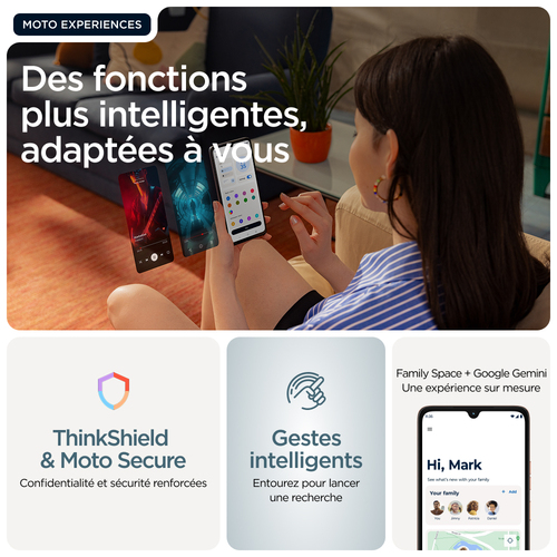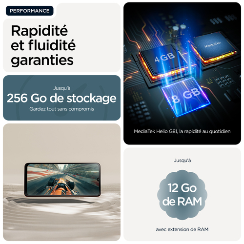 Beschreibung:rnMotorola Moto G06 - 4G Smartphone - Dual-SIM - RAM 4 GB / 256 GB - microSD slot - LCD-Anzeige - 6.88" - 1640 x 720 Pixel (120 Hz) (PBA20017SE)rnrn Technische Daten rn rn Hersteller Motorola rn Betriebssystem Android 15.0 (ab Werk) rn Display 6.88", 1640x720 Pixel, 16 Mio. Farben, IPS, kapazitiver Touchscreen, Gorilla Glass 3, flach, Aussparung, 60-120Hz Aktualisierungsrate, 450 Nits (typisch), 600 Nits (maximal), 260ppi rn Kamera hinten 50.0MP, f/?1.8, Phasenvergleich-AF, LED-Blitz, Videos @1080p/?30fps rn Kamera vorne 8.0MP, f/?2.0, Videos @1080p/?30fps rn Schnittstellen USB-C 2.0 (480Mb/?s), 3.5mm Klinke, Wi-Fi 5 (WLAN 802.11a/?b/?g/?n/?ac), Bluetooth, NFC rn Sensoren Beschleunigungssensor, Annäherungssensor, Lichtsensor, Fingerabdrucksensor (seitlich) rn SoC MediaTek Helio G81 rn CPU 2x 2.00GHz ARM Cortex-A75 + 6x 1.80GHz ARM Cortex-A55, 8 Kerne rn GPU ARM Mali-G52 MC2 rn RAM 4GB rn Speicher 256GB, microSD-Slot (bis 1TB) rn Navigation GPS, GLONASS,