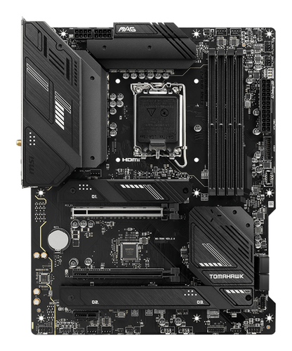 | Beschreibung: | Die MAG-Serie kämpft an der Seite von Spielern für die Ehre. Mit zusätzlichen militärisch inspirierten Elementen in diesen Gaming-Produkten wurden sie als Symbol für Robustheit und Langlebigkeit wiedergeboren.schwarzFormfaktor: ATXGrafik: 2x PCIe x16Sockel: 1700Chipsatz: Intel® B760Hauptmerkmale rn rn Prozessor rn Prozessorhersteller Intel rn Prozessorsockel LGA 1700 rn Kompatible Prozessoren Intel® Celeron®, Intel® Pentium® Gold rn Maximale Anzahl an SMP-Prozessoren 1 rn Unterstützte Prozessorsteckplätze LGA 1700 rn rn Speicher rn Unterstützte Arbeitsspeicher DDR5-SDRAM rn Anzahl der Speichersteckplätze 4 rn RAM-Speicher maximal 128 GB rn Arbeitsspeicher Typ DIMM rn Speicherkanäle Zweikanalig rn Ohne ECC Ja rn Unterstützte Arbeitsspeichergeschwindigkeit 7000, 6800, 6600, 6400, 6200, 6000, 5800, 5600, 5400, 5200, 5000, 4800 MHz rn Unterstützte Speichertaktrate (max.) 7000 MHz rn rn Speicher-Controller rn Unterstützte Speicherlaufwerk-Schnittstellen M.2, SATA III rn RAID-Unterstützung Ja rn RAID Level 0, 1, 5, 10 rn rn Interne E/A-Anschlüsse rn Anzahl USB 2.0 Schnittstellen 4 rn USB 3.2 Gen 1 (3.1 Gen 1) Anschlüsse 2 rn USB 3.2 Gen 2 (3.1 Gen 2) Anschlüsse 1 rn SATA III Anschlüsse 4 rn S/PDIF aus Stecker JaWeee-Nr.: 54978142Das MAG B760 TOMAHAWK WIFI Mainboard von MSI ist ein leistungsstarkes ATX-Motherboard für Intel-Prozessoren der 12. und 13. Generation mit LGA1700-Sockelunterstützung. Es bietet eine stabile Stromversorgung durch das fortschrittliche 12+1+1 Duet Rail Power System sowie Unterstützung für schnellen DDR5-Arbeitsspeicher bis zu einer Geschwindigkeit von 7000 MHz (OC). Dank PCIe Gen4-Technologie profitieren Nutzer von ultraschnellen Datenübertragungen und zwei M.2-Steckplätzen mit Shield Frozr-Kühlung sorgen für optimale SSD-Leistung und -Langlebigkeit. Integriertes Wi-Fi 6E und Realtek-2,5G-LAN bieten beste Konnektivität sowohl beim Gaming als auch bei kreativen Anwendungen oder im Homeoffice-Bereich. Die erweiterte Kühlkörperkonstruktion garantiert Stabilität selbst unter hoher Lastbelastung des Systems ? ideal für anspruchsvolle Anwender! MSI steht nicht nur für innovative Technik und Zuverlässigkeit: Das Unternehmen engagiert sich aktiv im Bereich Nachhaltigkeit durch umweltfreundliche Verpackungen sowie energieeffiziente Produktionsprozesse ? so leisten Sie mit dem Kauf dieses Produkts einen wertvollen Beitrag zum Umweltschutz. |  | | Herstellernummer: |