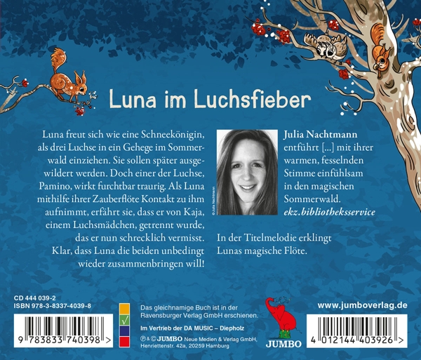 01. Reuters, Inga "Ansage" 02. Swiderski, C. "Musik Lunas Zauberfloete Intro" 03. Nachtmann, Julia "Eichhoernchen-Spione" 04. Nachtmann, Julia "Ein Geheimnis Mit Pinselohren" 05. Nachtmann, Julia "Luna Im Luchsfieber" 06. Nachtmann, Julia "Grosse Wut Und Kleine Waldmusik" 07. Nachtmann, Julia "Auf Dem Dunkelpfad" 08. Nachtmann, Julia "Ein Schlaefriger Kleiner Kerl" 09. Nachtmann, Julia "Frischer Wind Fuer Die Schleiereule" 10. Nachtmann, Julia "Eine Merkwuerdige Floetenstunde" 11. Nachtmann, Julia "Kakao Bei Pipa Piepenbrink" 12. Nachtmann, Julia "Luna Auf Der Pirsch" 13. Nachtmann, Julia "Wildschweinaerger Und Hagebuttentee" 14. Nachtmann, Julia "Floetenwunder" 15. Nachtmann, Julia "Schuluntericht Mit Foerster" 16. Nachtmann, Julia "Hetzgesang Im Finsterwald" 17. Nachtmann, Julia "Ein Luchs Mit Gruenen Augen" 18. Swiderski, C. "Musik Luna Wunderwald Extro"