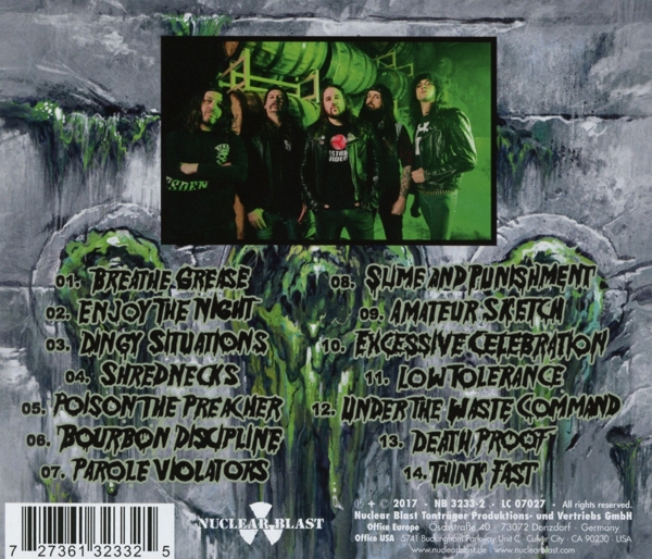 01. "Breathe Grease" 02. "Enjoy the Night" 03. "Dingy Situations" 04. "Shrednecks" 05. "Poison the Preacher" 06. "Bourbon Discipline" 07. "Parole Violators" 08. "Slime and Punishment" 09. "Amateur Sketch" 10. "Excessive Celebration" 11. "Low Tolerance" 12. "Under the Waste Command" 13. "Death Proof" 14. "Think Fast"