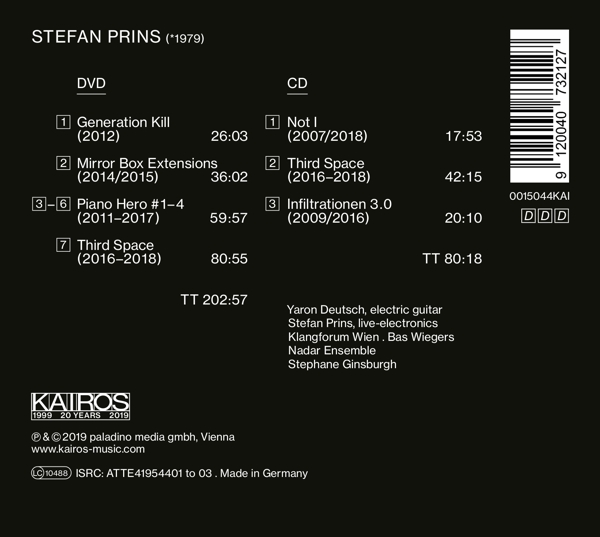 Beschreibung:Artwork [Cover Art Work By]: Stefan Prins, Composed By: Stefan Prins, Liner Notes: Tim Rutherford-Johnson, Mixed By [Audio Mixing], Edited By [Audio Editing]: Stefan Prins, Mixed By [Audio Mixing], Edited By [Audio Editing]: Yaron Deutsch, Mixed By [Audio Mixing], Edited By [Audio Editing], Mastered By [Audio Mastering]: Florian Bogner, Mixed By [Audio Mixing], Mastered By [Audio Mastering]: Stefano Bechini, Photography By [Back Cover Of Booklet Photo]: Laurent Orseau, Recorded By [Audio Recording Engineer]: Florian Bogner, Recorded By [Audio Recording Engineer]: Peter Böhm (2), Recorded By [Audio Recording Engineer]: Stefano Bechini, Recorded By [Audio Recording Engineer]: Wannes Gonnissen, Cello: Pieter Matthynssens, Computer [Game Controller]: Dries Tack, Computer [Game Controller]: Katrien Gaelens, Electric Guitar: Kobe Van Cauwenberghe, Ensemble: Nadar Ensemble, Percussion: Yves Goemaere, Piano, MIDI Controller [Keyboard], Computer [Game Controller]: Elisa Medinilla, Sound Designer [Sound]: Wannes Gonnissen, Trombone, Computer [Game Controller]: Thomas Moore (11), Violin, Set Designer [Scenography]: Marieke Berendsen, Cello: Pieter Matthynssens, Electric Guitar: Kobe Van Cauwenberghe, Ensemble: Nadar Ensemble, Percussion: Yves Goemaere, Piano, MIDI Controller [Keyboard], Computer [Game Controller]: Elisa Medinilla, Saxophone: Bertel Schollaert, Sound Designer [Sound]: Wannes Gonnissen, Trombone: Thomas Moore (11), Violin, Set Designer [Scenography]: Marieke Berendsen, Electronics [Live-Electronics]: Stefan Prins, Piano, MIDI Controller [Keyboard]: Stephane Ginsburgh, Sound Designer [Sound], Electronics [Live-Electronics]: Florian Bogner, Accordion: Krassimir Sterev, Clarinet [Clarinets]: Olivier Vivarès, Concept By, Music By: Stefan Prins, Conductor: Bas Wiegers, Double Bass: Uli Fussenegger, Electric Guitar: Yaron Deutsch, Ensemble: Klangforum Wien, Keyboards [Keyboard]: Florian Müller, Percussion: Lukas Schiske, Performer [Dancers]: Hiatus (11), Saxophone [Saxophones]: Gerald Preinfalk, Sound Designer [Sound]: Florian Bogner, Sound Designer [Sound]: Peter Böhm (2), Trombone: Ivo Nilsson, Trumpet: Anders Nyqvist, Viola: Dimitrios Polisoidis, Electric Guitar: Yaron Deutsch, Electronics [Live-Electronics]: Stefan Prins, Accordion: Krassimir Sterev, Clarinet [Clarinets]: Olivier Vivarès, Conductor: Bas Wiegers, Double Bass: Uli Fussenegger, Electric Guitar: Yaron Deutsch, Ensemble: Klangforum Wien, Keyboards [Keyboard]: Florian Müller, Percussion: Lukas Schiske, Saxophone [Saxophones]: Gerald Preinfalk, Sound Designer [Sound]: Florian Bogner, Sound Designer [Sound]: Peter Böhm (2), Trombone: Ivo Nilsson, Trumpet: Anders Nyqvist, Viola: Dimitrios Polisoidis, Cello: Pieter Matthynssens, Effects [FX Pedals]: Johannes Westendorp, Effects [FX Pedals]: Kris Delacourt, Electronics [Live-Electronics]: Stefan Prins, Ensemble: Nadar Ensemble, Sound Designer [Sound]: Wannes Gonnissen, Viola: Vincent Hepp, Violin: Diamanda Laberge Dramm, Violin: Marieke Berendsen, Labelcode 0015044KAI, Phonographic Copyright (p) Paladino Media GmbH, Copyright (c) Paladino Media GmbH, Copyright (c) Laurent Orseau