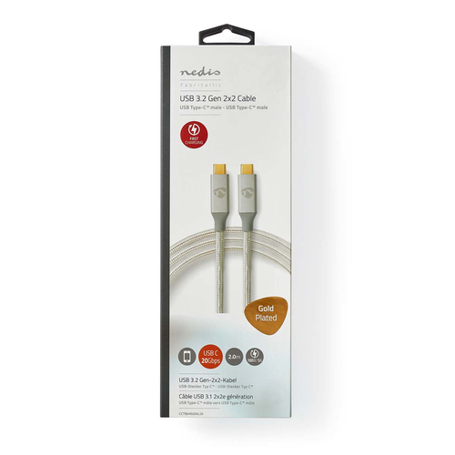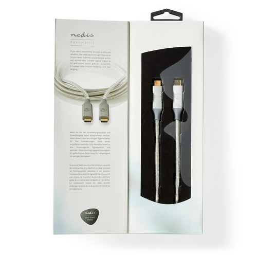 Beschreibung:Nedis CCTB64020AL20. Kabellänge: 2 m, Anschluss 1: USB C, Anschluss 2: USB C, USB-Version: USB4 Gen 2x2, Maximale Datenübertragungsrate: 20000 Mbit/s, Produktfarbe: Silber (CCTB64020AL20)