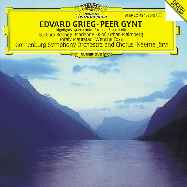Beschreibung:Baritone Vocals: Carl Gustaf Holmgren, Baritone Vocals: Urban Malmberg, Chorus: Gösta Ohlin's Vocal Ensemble, Chorus: Pro Musica Chamber Choir, Chorus Master: Gösta Ohlin, Composed By: Edvard Grieg, Conductor: Neeme Järvi, Engineer [Balance]: Michael Bergek, Libretto By: Henrik Ibsen, Liner Notes: Anthony Burton, Mezzo-soprano Vocals: Marianne Eklöf, Orchestra: Göteborgs Symfoniker, Producer: Lennart Dehn, Soprano Vocals: Barbara Bonney, Voice [Speaker]: Tor Stokke, Voice [Speaker]: Toralv Maurstad, Voice [Speaker]: Wenche Foss, Labelcode DGRG427325.2 (427 325-2), Phonographic Copyright (p) Polydor International GmbH, Recorded At Göteborgs Konserthus, Printed By Neef, Made By PMDC, France