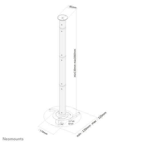 Beschreibung: | Diese universelle Neomounts Projektor Deckenhalterung, Modell BEAMER-C200, ermöglicht es Ihnen einen Projektor - Beamer/Strahler an jede Decke zu montieren.Die Verwendung einer Deckenhalterung bietet höchste Ansprüche an die Fähigkeiten des Projektors profitieren. Diese Unterstützung ist höhenverstellbar von 8 bis 98 cm und bietet reichlich Platz für Projektoren bis 15 Kilogramm. Die neig- und drehbare Einstellungsmöglichkeiten sorgen für den besten projektier Winkel. Ideal anzubringen an horizontale Kurzinfo: Neomounts by Newstar BEAMER-C200 - Klammer - für Projektor (full-motion) - Silber - Deckenmontage Gruppe AV-Möbel Hersteller Neomounts by Newstar Hersteller Art. Nr. BEAMER-C200 EAN/UPC 8717371441272 Produktbeschreibung: Neomounts by Newstar BEAMER-C200 - Klammer - für Projektor (full-motion) Produkttyp Klammer (full-motion) - Deckenmontage Einstellbare Höhe 13-106 cm Neigung 15° Drehen 360° Anpassungen Höhe, Neigung, schwenken, Drehung Empfohlene Verwendung Projektor Max. Ladegewicht 15 kg Farbe Silber Ausführliche Details Allgemein Einstellbare Höhe 13-106 cm Farbe Silber Möbel für audiovisuelle Geräte Typ Klammer Design Full-motion Empfohlene Verwendung Projektor Platzierung/Montage Deckenmontage Kabelaufbewahrung Integrierte Kabelaufbewahrung Neigung 15° Drehen 360° Anpassungen Höhe, Neigung, schwenken, Drehung Max. Ladegewicht 15 kg Funktionen Verstellbare Höhe, Drehturm, Schwenkeinstellung |  | Herstellernummer: |