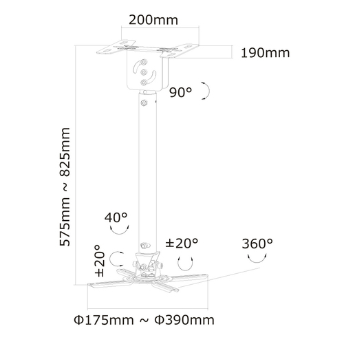 Details: Allgemein Einstellbare Höhe 29-87 cm Farbe Schwarz Möbel für audiovisuelle Geräte Typ Befestigungskit Montagekomponenten Deckenmontage Empfohlene Verwendung Projektor Platzierung/Befestigung Deckenmontage möglich Max. Ladegewicht 15 kg Funktionen Verstellbare Höhe, Drehturm, Pitch-Einstellung