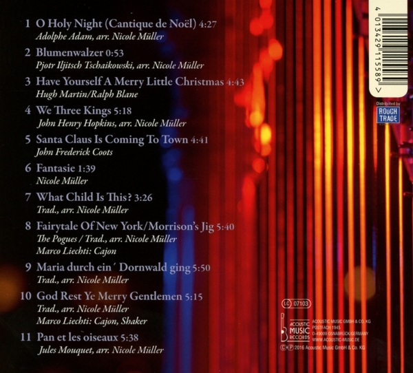 01. "O holy night" 02. "Blumenwalzer" 03. "Have yoursel a Merry little Christmas" 04. "We three kings" 05. "Santa Clasu is coming to town" 06. "Fantasie" 07. "What child it this?" 08. "Fairytale of New York (Morrison's Jig)" 09. "Maria durch ein' Dornwald ging" 10. "God rest ye merry gentlemen" 11. "Pan et les oiseaux"