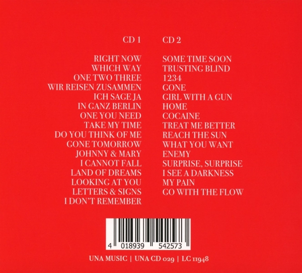 Disc 01 01. "Right now" 02. "Which way" 03. "One, two, three" 04. "Wir reisen zusammen" 05. "Ich sage ja" 06. "In ganz Berlin" 07. "One you need" 08. "Take My Time" 09. "Do you think of me" 10. "Gone tomorrow" 11. "Johnny & Mary" 12. "I Cannot Fall" 13. "Land of dreams" 14. "Looking at you" 15. "Letters & Signs" 16. "I Don't Remember"