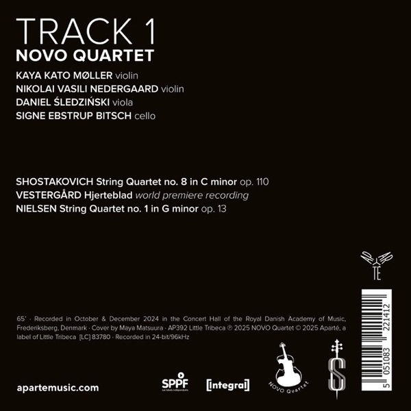 Streichquartett Nr. 8 c-moll op. 110 01. "1. Largo" 02. "2. Allegro molto" 03. "3. Allegretto" 04. "4. Largo" 05. "5. Largo" Hjerteblad 06. "1. Spirelag Nocturne" 07. "2. Time-Lapse" 08. "3. Lovfald - Formulde" Streichquartett Nr. 1 g-moll op. 13 09. "1. Allegro energico" 10. "2. Andante amoroso" 11. "3. Scherzo: Allegro molto" 12. "4. Finale: Allegro"