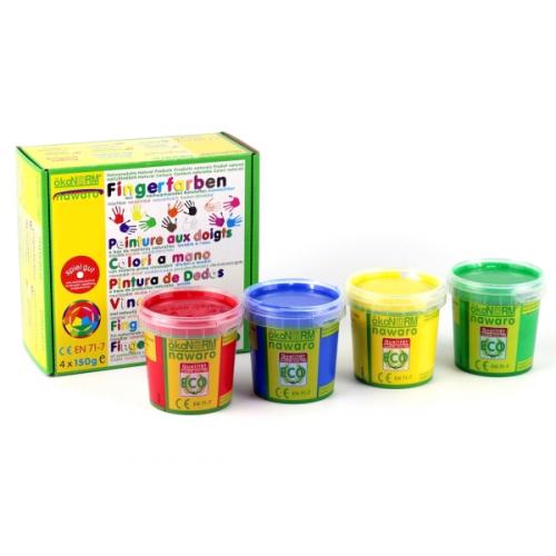 ÖkoNORM Fingerfarben Nawaro 4er-Set: rot, gelb, grün, blau. Ökotest Sehr gut, spiel-gut Siegel, aus natürlichen, nachwachsenden Rohstoffen, wasserlöslich.