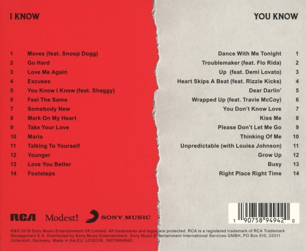 Disc 01 01. Murs, Olly / Snoop Dogg "Moves" 02. Murs, Olly "Go Hard" 03. Murs, Olly "Love Me Again" 04. Murs, Olly "Excuses" 05. Murs, Olly / Shaggy "You Know I Know" 06. Murs, Olly "Feel the Same" 07. Murs, Olly "Somebody New" 08. Murs, Olly "Mark On My Heart" 09. Murs, Olly "Take Your Love" 10. Murs, Olly "Maria" 11. Murs, Olly "Talking to Yourself" 12. Murs, Olly "Younger" 13. Murs, Olly "Love You Better" 14. Murs, Olly "Footsteps"