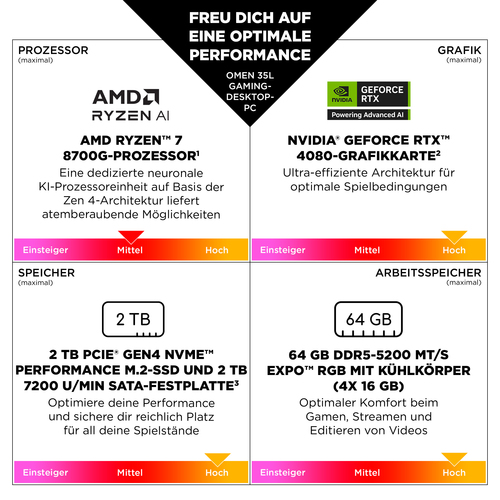 Speicher: 32 GB DDR5-Arbeitsspeicher | 1 TB SSD-Festplatte