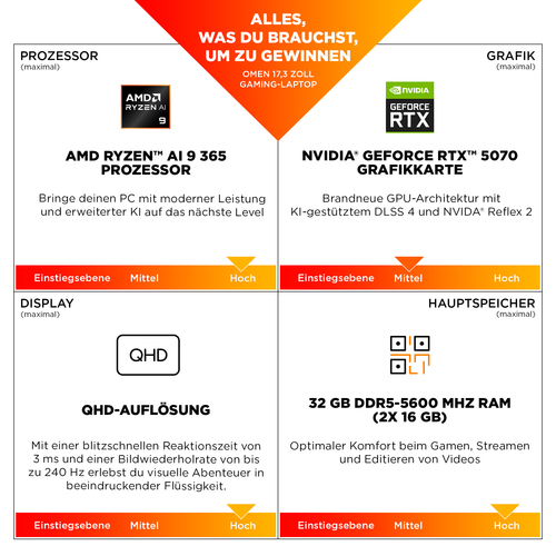 - Du besitzst "HP OMEN Gaming Laptop 17-db1178ng Copilot+ PC AMD Ryzen AI 7 43,9 cm (17.3") Full HD 32 GB DDR5-SDRAM NVIDIA GeForce RTX 5060 Wi-Fi 6 (802.11ax) FreeDOS Schwarz [DE-Version, German Keyboard]" oder kennst den Artikel bereits?