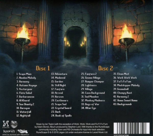 Disc 01 01. Taylor, Ian "Scape Main" 02. Taylor, Ian "Newbie Melody" 03. Taylor, Ian "Harmony" 04. Taylor, Ian "Autumn Voyage" 05. Taylor, Ian "Yesteryear" 06. Taylor, Ian "Flute Salad" 07. Taylor, Ian "Barbarianism" 08. Taylor, Ian "Al Kharid" 09. Taylor, Ian "Sea Shanty 2" 10. Taylor, Ian "Baroque" 11. Taylor, Ian "Waterfall" 12. Taylor, Ian "Nightfall" 13. Taylor, Ian "Adventure" 14. Taylor, Ian "Medieval" 15. Taylor, Ian "Garden" 16. Taylor, Ian "Still Night" 17. Taylor, Ian "Fanfare" 18. Taylor, Ian "Arrival" 19. Taylor, Ian "Horizon" 20. Taylor, Ian "Castlewars" 21. Taylor, Ian "Scape Sad" 22. Taylor, Ian "Crystal Sword" 23. Taylor, Ian "Dark" 24. Taylor, Ian "Book Of Spells"