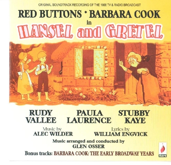 01. Buttons, Red "Introduction ("Hansel and Gretel")" 02. Cook, Barbara / Buttons, Red "I'm much too happy dancing to care ("Hansel and Gretel")" 03. Buttons, Red "Narration ("Hansel and Gretel")" 04. Kaye, Stubby & Chorus "Market today ("Hansel and Gretel")" 05. Buttons, Red "Narration ("Hansel and Gretel")" 06. Vallee, Rudy & Chorus "Men rule the world ("Hansel and Gretel")" 07. Buttons, Red "Narration ("Hansel and Gretel")" 08. Cook, Barbara "Evening song (Soft through the woodland) ("Hansel and Gretel")" 09. Buttons, Red "Narration ("Hansel and Gretel")" 10. Cook, Barbara "Morning song ("Hansel and Gretel")" 11. Buttons, Red "Narration ("Hansel and Gretel")" 12. Laurence, Paula "Eenie, meenie, myne mo (The counting song) ("Hansel and Gretel")" 13. Buttons, Red "Narration ("Hansel and Gretel")" 14. Cook, Barbara / Buttons, Red / Laurence, Paula "What are little girls made of ("Hansel and Gretel")" 15. Cook, Barbara / Buttons, Red / Laurence, Paula / Kaye, Stubby / Osser, Glenn / +++ "Narration ("Hansel and Gretel")" 16. Cast, Entire "Finale (Say to troubles) ("Hansel and Gretel")" 17. Cook, Barbara / Courtland, Jerome "Here's to your illusions ("Hansel and Gretel")" 18. Cook, Barbara / Courtland, Jerome "He's only wonderful ("Hansel and Gretel")" 19. Cook, Barbara "Come back little genie ("Hansel and Gretel")" 20. Cook, Barbara "This is all very new to me ("Hansel and Gretel")" 21. Cook, Barbara "I'll show him ("Hansel and Gretel")" 22. Cook, Barbara "Glitter and be gay ("Hansel and Gretel")" 23. Cook, Barbara "Goodnight, my someone ("Hansel and Gretel")" 24. Cook, Barbara "My white knight ("Hansel and Gretel")" 25. Cook, Barbara / Men's Chorus "Lida Rose & will I ever tell you ("Hansel and Gretel")" 26. Cook, Barbara / Preston, Robert "Till there was you ("Hansel and Gretel")"
