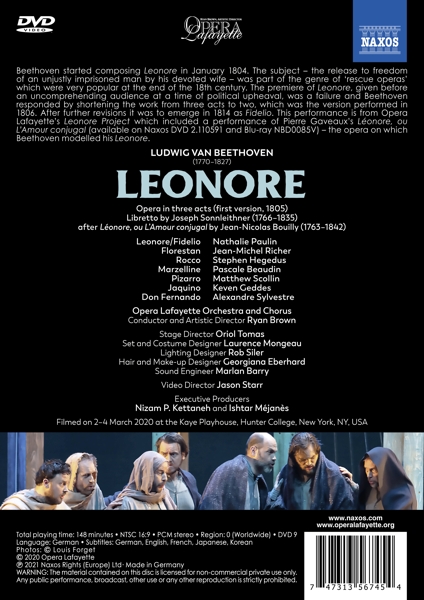 Leonore (Oper in 3 Akten) (1. Fassung, 1805) (Gesamtaufnahme) 01. "Vorspann" 02. "Ouvertüre" 03. "Fidelio kommt nicht zurück! (1. Akt)" 04. "O w?r' ich nicht heute schon" 05. "Jetzt, Sch?tzenchen, sind wir allein - H?re, Jaquino" 06. "Ein Mann ist bald genommen - Ist Fidelio noch nicht nach Hause gekommen?" 07. "Mir ist so wunderbar - H?re, Fidelio" 08. "Hat man nicht auch Gold beineben - Ihr k?nnt das leicht sagen, Meister Rocco" 09. "Gut, S?hnchen, gut, hab immer Mut" 10. "Drei Schildwachen auf den Wall" 11. "Ha! welch ein Augenblick! - Rocco! - Herr!" 12. "Jetzt, Alter, jetzt hat es Eile! - Nun ist es endlich entschieden" 13. "Um in der Ehe froh zu leben - Jetzt ist die Stunde" 14. "Ach, brich nocht nichtm, du mattes Herz! - Komm, Hoffnung" 15. "O welche Lust" 16. "Entfernt euch jetzt!" 17. "Auf euch nur will ich bauen" 18. "Gott! Welch Dunkel hier! - In des Lebens Frühlingstagen" 19. "Wie kalt hier" 20. "Nur hurtig fort, nur frisch gegraben - Er erwacht!" 21. "Euch werde Lohn in bessern Welten - Alles ist bereit" 22. "Er sterbe! - Die Waffe hab ich mir nehmen lasse" 23. "Ich kann mich noch nicht fassen - Leonore, durch welches Wunder" 24. "Zur Rache!" 25. "O Gott! O welch ein Augenblick!" 26. "Wie lange habt ihr sie getragen?" 27. "Wer ein holdes Weib errungen" 28. "Applaus und Abspann"
