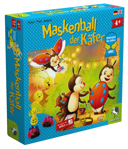 Beschreibung:Bald findet der jährliche Maskenball in Käferstadt statt und die Marienkäfer sind dabei ihre Kostüme zu vollenden: Damit alle schön bunt werden, tauschen die Käfer ihre einfarbigen Punkte wild durcheinander. Doch um mit einem Käfer zu tauschen, muss erst die Sympathieprüfung bestanden werden, sonst dreht sich der vermeintliche Tauschpartner einfach weg. Aufgepasst: Die frechen Ameisen wollen auch zum Ball. Die Marienkäfer müssen sich also beeilen, um fertig gekleidet zu sein, ehe die Ameisen eintreffen. Magnetische Anziehungskraft, kleine Geschicklichkeitsproben und Zufallselemente, die jede Partie variieren, machen den Maskenball der Käfer zu einem Vergnügen für Kinder. Kinderspiel des Jahres 2002. Ab 4 Jahren.