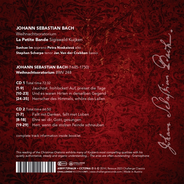 1. JAUCHZET, FROHLOCKET! AUF, PREISET DIE TAGE: JAUCHZET, FROHL 2. JAUCHZET, FROHLOCKET! AUF, PREISET DIE TAGE: ES BEGAB SICH A 3. JAUCHZET, FROHLOCKET! AUF, PREISET DIE TAGE: NUN WIRD MEIN L 4. JAUCHZET, FROHLOCKET! AUF, PREISET DIE TAGE: BEREITE DICH, Z 5. JAUCHZET, FROHLOCKET! AUF, PREISET DIE TAGE: WIE SOLL ICH DI 6. JAUCHZET, FROHLOCKET! AUF, PREISET DIE TAGE: UND SIE GEBAR I 7. JAUCHZET, FROHLOCKET! AUF, PREISET DIE TAGE: ER IST AUF ERDE 8. JAUCHZET, FROHLOCKET! AUF, PREISET DIE TAGE: GROSSER HERR, O 9. JAUCHZET, FROHLOCKET! AUF, PREISET DIE TAGE: ACH MEIN HERZLI 10. UND ES WAREN HIRTEN IN DERSELBEN GEGEND: SINFONIA 11. UND ES WAREN HIRTEN IN DERSELBEN GEGEND: UND ES WAREN HIRTEN 12. UND ES WAREN HIRTEN IN DERSELBEN GEGEND: BRICH AN, O SCHVNES 13. UND ES WAREN HIRTEN IN DERSELBEN GEGEND: UND DER ENGEL SPRAC 14. UND ES WAREN HIRTEN IN DERSELBEN GEGEND: WAS GOTT DEM ABRAHA 15. UND ES WAREN HIRTEN IN DERSELBEN GEGEND: FROHE HIRTEN, EILT, 16. UND ES WAREN HIRTEN IN DERSELBEN GEGEND: UND DAS HABT ZUM ZE 17. UND ES WAREN HIRTEN IN DERSELBEN GEGEND: SCHAUT HIN, DORT LI 18. UND ES WAREN HIRTEN IN DERSELBEN GEGEND: SO GEHT DENN HIN, I 19. UND ES WAREN HIRTEN IN DERSELBEN GEGEND: SCHLAFE, MEIN LIEBS 20. UND ES WAREN HIRTEN IN DERSELBEN GEGEND: UND ALSOBALD WAR DA 21. UND ES WAREN HIRTEN IN DERSELBEN GEGEND: EHRE SEI GOTT IN DE 22. UND ES WAREN HIRTEN IN DERSELBEN GEGEND: SO RECHT, IHR ENGEL 23. UND ES WAREN HIRTEN IN DERSELBEN GEGEND: WIR SINGEN DIR IN D 24. HERRSCHER DES HIMMELS, ERHORE DAS LALLEN: HERRSCHER DES HIMM 25. HERRSCHER DES HIMMELS, ERHORE DAS LALLEN: UND DA DIE ENGEL V 26. HERRSCHER DES HIMMELS, ERHORE DAS LALLEN: LASSET UNS NUN GEH 27. HERRSCHER DES HIMMELS, ERHORE DAS LALLEN: ER HAT SEIN VOLK G 28. HERRSCHER DES HIMMELS, ERHORE DAS LALLEN: SEIN GROSS LIEB ZU 29. HERRSCHER DES HIMMELS, ERHORE DAS LALLEN: HERR, DEIN MITLEID 30. HERRSCHER DES HIMMELS, ERHORE DAS LALLEN: UND SIE KAMEN EILE 31. HERRSCHER DES HIMMELS, ERHORE DAS LALLEN: SCHLIESSE, MEIN HE 32. HERRSCHER DES HIMMELS, ERHORE DAS LALLEN: WAS ES AN DIESER H 33. HERRSCHER DES HIMMELS, ERHORE DAS LALLEN: ICH WILL DICH MIT 34. HERRSCHER DES HIMMELS, ERHORE DAS LALLEN: UND DIE HIRTEN KEH 35. HERRSCHER DES HIMMELS, ERHORE DAS LALLEN: SEID FROH DIEWEIL 1. FALLT MIT DANKEN, FALLT MET LOBEN: FALLT MIT DANKEN, FALLT M 2. FALLT MIT DANKEN, FALLT MET LOBEN: UND DA ACHT TAGE UM WAREN 3. FALLT MIT DANKEN, FALLT MET LOBEN: IMMANUEL, O S|_ES WORT! 0 4. FALLT MIT DANKEN, FALLT MET LOBEN: FLOSST, MEIN HEILAND, FLO 5. FALLT MIT DANKEN, FALLT MET LOBEN: WOHLAN, DEIN NAME SOLL AL 6. FALLT MIT DANKEN, FALLT MET LOBEN: ICH WILL NUR DIR ZU EHREN 7. FALLT MIT DANKEN, FALLT MET LOBEN: JESUS RICHTE MEIN BEGINNE 8. EHRE SEI DIR, GOTT, GESUNGEN: EHRE SEI DIR, GOTT, GESUNGEN 0 9. EHRE SEI DIR, GOTT, GESUNGEN: DA JESUS GEBOREN WAR ZU BETHLE 10. EHRE SEI DIR, GOTT, GESUNGEN: WO IST DER NEUGEBORNE KVNIG DE 11. EHRE SEI DIR, GOTT, GESUNGEN: DEIN GLANZ ALL FINSTERNIS VERZ 12. EHRE SEI DIR, GOTT, GESUNGEN: ERLEUCHT AUCH MEINE FINSTRE SI 13. EHRE SEI DIR, GOTT, GESUNGEN: DA DAS DER KVNIG HERODES HVRTE 14. EHRE SEI DIR, GOTT, GESUNGEN: WARUM WOLLT IHR ERSCHRECKEN? 0 15. EHRE SEI DIR, GOTT, GESUNGEN: UND LIE_ VERSAMMLEN ALLE HOHEP 16. EHRE SEI DIR, GOTT, GESUNGEN: ACH, WENN WIRD DIE ZEIT ERSCHE 17. EHRE SEI DIR, GOTT, GESUNGEN: MEIN LIEBSTER HERRSCHET SCHON. 18. EHRE SEI DIR, GOTT, GESUNGEN: ZWAR IST SOLCHE HERZENSSTUBE 0 19. HERR, WENN DIE STOLZEN FEINDE SCHNAUBEN: HERR, WENN DIE STOL 20. HERR, WENN DIE STOLZEN FEINDE SCHNAUBEN: DA BERIEF HERODES D 21. HERR, WENN DIE STOLZEN FEINDE SCHNAUBEN: DU FALSCHER, SUCHE 22. HERR, WENN DIE STOLZEN FEINDE SCHNAUBEN: NUR EIN WINK VON SE 23. HERR, WENN DIE STOLZEN FEINDE SCHNAUBEN: ALS SIE NUN DEN KVN 24. HERR, WENN DIE STOLZEN FEINDE SCHNAUBEN: ICH STEH AN DEINER 25. HERR, WENN DIE STOLZEN FEINDE SCHNAUBEN: UND GOTT BEFAHL IHN 26. HERR, WENN DIE STOLZEN FEINDE SCHNAUBEN: SO GEHT! GENUG, MEI 27. HERR, WENN DIE STOLZEN FEINDE SCHNAUBEN: NUN MVGT IHR STOLZE 28. HERR, WENN DIE STOLZEN FEINDE SCHNAUBEN: WAS WILL DER HVLLEN 29. HERR, WENN DIE STOLZEN FEINDE SCHNAUBEN: NUN SEID IHR WOHL G |