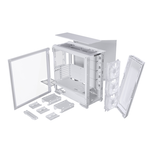Verpackungsdaten | | Verpackungsbreite | 325 mm | | Verpackungstiefe | 610 mm | | Verpackungshöhe | 610 mm | | Paketgewicht | 12,7 kg | Technische Details | | Garantiezeit | 5 Jahr(e) | Stromversorgung | | Netzteil enthalten | Nein | Speichermedium | | Unterstützte Hard-Disk Drive Größen | 2.5,3.5 " | Kühlung | | Installierte Lüfter (Vorderseite) | 3x 140 mm | | Anzahl unterstützter vorderer Lüfter (max.) | 3 | | Durchmesser unterstützte Vorderseitenlüfter | 120,140 mm | | Anzahl der unterstützten hinteren Lüfter (max.) | 1 | | Durchmesser unterstützter Rückseitenlüfter | 120,140 mm | | Anzahl der unterstützten oberen Lüfter (max.) | 3 | | Unterstützte Lüfterdurchmesser (oben) | 120,140 mm | | Unterstützte Radiatorgrößen vorne | 360,420 mm | | Unterstützte Radiatorgrößen hinten | 120 mm | | Unterstützte Radiatorgrößen oben | 280,360 mm | Gewicht und Abmessungen | | Breite | 240 mm | | Tiefe | 500 mm | | Höhe | 515 mm | | Gewicht | 10,5 kg | Design | | Formfaktor | Midi Tower | | Typ(en) | PC | | Produktfarbe | Weiß | | Unterstützte Motherboards Formfaktoren | ATX, EATX, micro ATX, Mini-ITX | | Anzahl der 3,5" Erweiterungseinschübe | 10 | | Anzahl der 5,25" Erweiterungseinschübe | 0 | | Material(ien) | Stahl | | Anzahl der 2,5" Erweiterungseinschübe | 9 | | Anzahl der Erweiterungsslots | 7 | | Seitenfenster | Ja | | Beleuchtung | Ja | | Farben der Beleuchtung | Multi | | Gehärtete(s) Glaspaneel(e) | Ja | | Verbessertes Kabelmanagement | Ja | | Ein-/Ausschalter | Ja | | RGB-Steuertaste | Ja | | Max CPU Kühler-Höhe | 18,5 cm | | Max Grafikkarten-Länge | 43,5 cm | | Maximum PSU Länge | 25 cm | Anschlüsse und Schnittstellen | | USB 3.2 Gen 1 (3.1 Gen 1) Anzahl der Anschlüsse vom Typ A | 2 | | USB 3.2 Gen 2 (3.1 Gen 2) Anzahl der Anschlüsse vom Typ C | 1 | | Kombinierter Kopfhörer-/Mikrofon-Anschluss | Ja |
