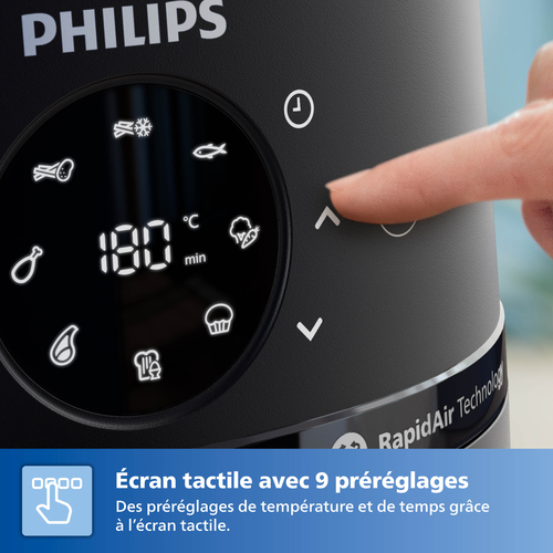 Beschreibung:Die Philips NA231/00 Heißluftfritteuse der Serie 2000 in Schwarz ist ein modernes Küchengerät für gesundes und vielseitiges Kochen ohne großen Aufwand. Dank der innovativen Rapid-Air-Technologie können Sie mit wenig oder ganz ohne Öl frittieren sowie backen, grillen und braten ? sogar das Aufwärmen von Speisen gelingt mühelos und schmackhaft zugleich! Mit einer Leistung von starken 2000 Watt heizt die Fritteuse schnell auf und sorgt für gleichmäßige Ergebnisse bei jeder Anwendung. Der großzügige Korb bietet Platz für bis zu 1,2 kg Pommes frites oder andere Gerichte ? ideal für Familienportionen! Über das digitale Touch-Display lassen sich verschiedene Programme auswählen; Temperatur (80?200 °C) und Zeit sind individuell einstellbar. Philips steht weltweit für hochwertige Haushaltsgeräte mit durchdachtem Design und hoher Benutzerfreundlichkeit. Das Unternehmen engagiert sich stark im Bereich Nachhaltigkeit: Energieeffizienz wird großgeschrieben; Verpackungen bestehen zum Teil aus recycelten Materialien; Produktionsprozesse werden laufend optimiert ? alles zum Schutz unserer Umwelt! Mit dem Kauf dieser Heißluftfritteuse entscheiden Sie sich nicht nur für gesunde Ernährung und Komfort im Alltag: Sie leisten auch einen aktiven Beitrag zu Umweltschutz & Ressourcenschonung durch weniger Ölverbrauch sowie geringeren Strombedarf gegenüber herkömmlichen Frittiermethoden.