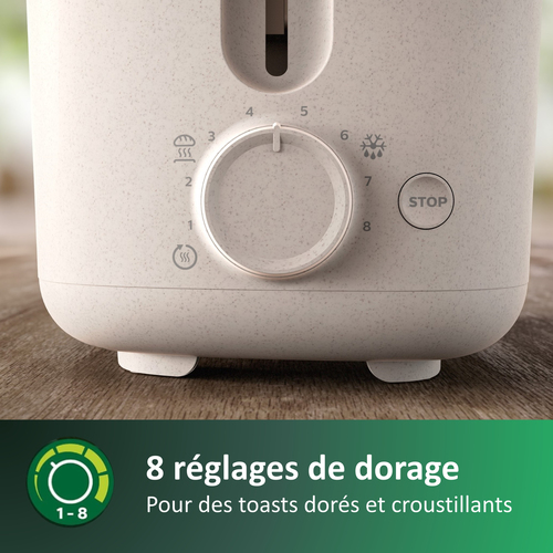 Bereiten Sie sich mit dem eleganten und leistungsstarken Toaster von Philips jeden Morgen Ihren Toast ganz nach Ihrem Geschmack zu. Er ist zu 100% aus biobasiertem Kunststoff gefertigt, nachhaltig und energiesparend - für einen weiteren Schritt in Richtung einer "grüneren" Zukunft.rnrn