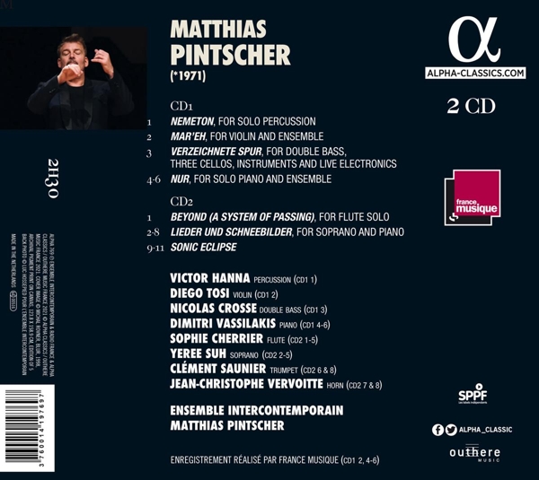 Disc 02 01. Sophie Cherrier "beyond (a system of passing) for flute solo" 02. Yeree Suh "I. (.)" 03. Yeree Suh "I. I will wade out" 04. Yeree Suh "II. To stand -alone" 05. Yeree Suh "III. Erstes Schneebild" 06. Yeree Suh "IV. The Moon is hiding in her hair" 07. Yeree Suh "V. Lady of silence" 08. Yeree Suh "VI. Zweites Schneebild" 09. Cl?ment Saunier "I. Celestial Object I, for solo trumpet and ensemble" 10. Cl?ment Saunier "II. Celestial Object II, for solo horn and ensemble" 11. Cl?ment Saunier "III. Occultation, for solo horn, solo trumpet and ensemble"