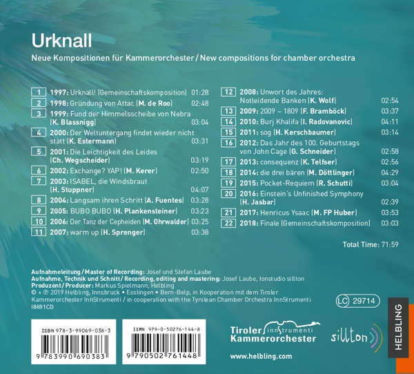 "Urknall" ist eine eindrucksvolle CD-Veröffentlichung der talentierten Künstler Ploner und Sammer gemeinsam mit dem renommierten Tiroler Kammerorchester. Diese musikalische Reise präsentiert ein breites Spektrum zeitgenössischer klassischer Kompositionen und verbindet innovative Orchesterarrangements mit ausdrucksstarken Soloparts. Das Album überzeugt durch seine dynamische Bandbreite und emotionale Tiefe ? eine moderne Interpretation von Kammermusik mit Wurzeln in der Tiroler Tradition und offenem Blick für globale Einflüsse. Der Hersteller Helbling Verlag steht seit Jahrzehnten für hochwertige Musikpublikationen im künstlerischen wie pädagogischen Bereich und genießt weltweit großes Vertrauen bei Musiker:innen sowie Lehrenden.