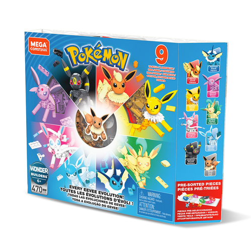 Das Mega Bloks Pokémon Ultimate Evoli Evolutionspaket von MGAB bietet ein spannendes Bauerlebnis für Fans jeden Alters. Das Set enthält über 470 Bauteile zum Bau von neun verschiedenen Entwicklungen des beliebten Pokémon-Charakters Evoli: Aquana (Vaporeon), Blitza (Jolteon), Flamara (Flareon), Psiana (Espeon), Nachtara (Umbreon), Folipurba (Leafeon), Glaziola (Glaceon), Feelinara (Sylveon) und das klassische Evoli selbst. Jede Figur ist voll beweglich mit artikulierten Gliedmaßen und detailreichen Merkmalen gestaltet ? so erwachen die einzelnen Entwicklungen zum Leben! Die Steine sind kompatibel mit anderen bekannten Marken und ermöglichen vielfältige Spielmöglichkeiten; empfohlen ab sechs Jahren sowie für Sammler hochwertiger Modelle.