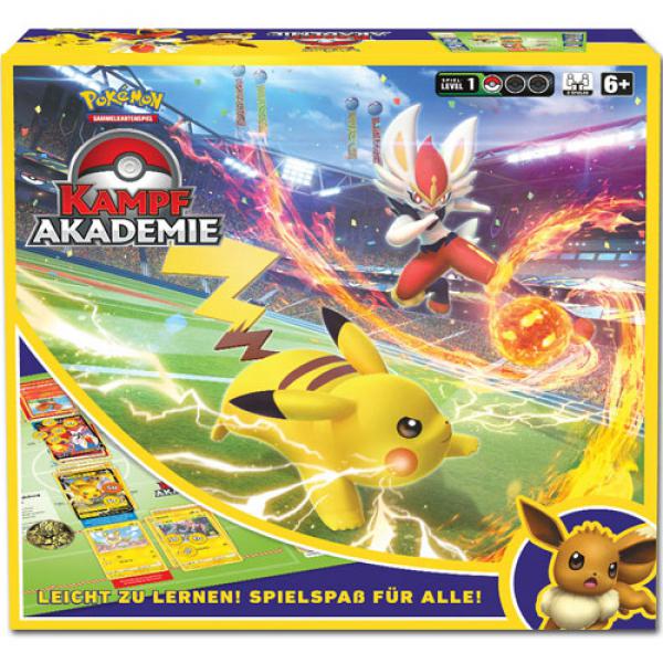 Warnhinweis: Schließe dich Pokémon-Trainern in der Kampfakademie an! Bereite dich auf einen Pokémon-Kampf mit der sofort spielbaren Kampfakademie des Pokémon- Sammelkartenspiels vor! Die Kampfakademie enthält alles, was zwei Spieler zum Spielen brauchen, unter anderem Spielanleitungen für die Decks, sodass dein erstes Match leicht überschaubar ist. Du kannst dich für Liberlo oder Pikachu als Anführer für dein Team in einem Kopf-an- Kopf-Kampf gegen einen anderen Trainer entscheiden. Wechsle dann das Deck, um Evoli gegen Liberlo oder Pikachu spielen zu lassen und ein anderes Pokémon-Team in die Arena zu führen! Mit ein wenig Strategie und ein bisschen Glück kannst du es mit den Besten aufnehmen! Die Kampfakademie des Pokémon-Sammelkartenspiels enthält: 3 komplette Pokémon-Sammelkartenspiel-Decks (mit jeweils 60 Karten), jedes Deck enthält ein besonderes mächtiges Pokémon: Liberlo-V, Pikachu-V oder Evoli-V, das Evoli-Deck enthält 2 Kopien einer brandneuen Promokarte mit Galar-Barrikadax, 1 Anleitungsblatt, um beim Spielaufbau zu helfen, 2 Spielanleitungen, um die Decks zu erklären, 1 Spielbrett für 2 Spieler, 3 Deckboxen zum Organisieren deiner Karten, 1 Regelbuch, 1 große Münze mit Liberlo, Pikachu und Evoli, 1 Schadensmarken-Satz und 1 Code-Karte für das neue Spiel Pokémon-Sammelkartenspiel-Live.