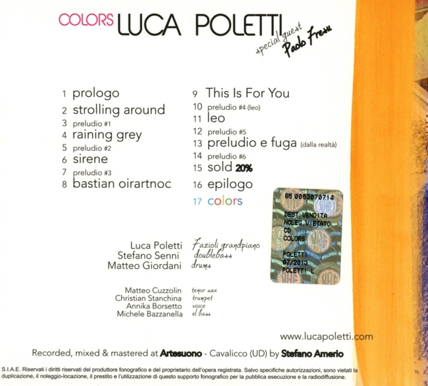 01. "Prologo" 02. "Strolling around" 03. "Preludio #1" 04. "Raining grey" 05. "Preludio #2" 06. "Sirene" 07. "Preludio #3" 08. "Bastian Oirartnoc" 09. "This is for you" 10. "Preludio #4 (Leo)" 11. "Leo" 12. "Preludio #5" 13. "Preludio e fuga (dalla realt?)" 14. "Preludio #6" 15. "Sold 20%" 16. "Epilogo" 17. "Colors"