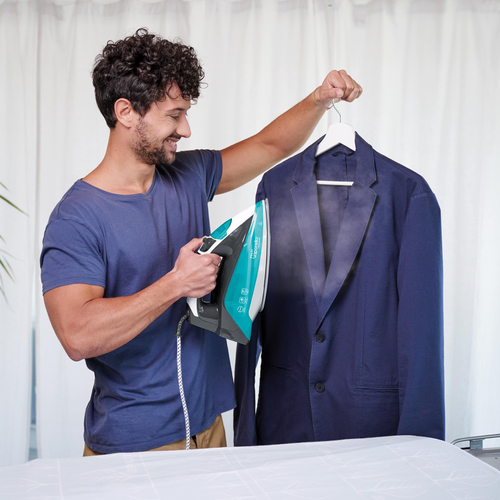 | Allgemeine Daten | | Gewicht in g | 1500 | | Tiefe in mm | 310 | | Höhe in mm | 155 | | Breite in mm | 120 | | Farbe | weiß / blau | | Leistungsdaten | | Nennaufnahme (Watt) | 2400 | | Geräte Ausstattung | | Material Bügelsohle | Aluminium mit Keramikbeschichtung | | Abschaltautomatik | Ja | | Entkalkungsfunktion | Ja | | Sprühfunktion | Ja | | Geeignet für Leitungswasser | Ja | | Wassertank-Volumen (ml) | 350 | | Max. Dampfstoßmenge (g/Min.) | 250 | | Max. Dauerdampfmenge (g/Min.) | 40 | | Typ(en) | | Typ(en) | Dampfbügeleisen |