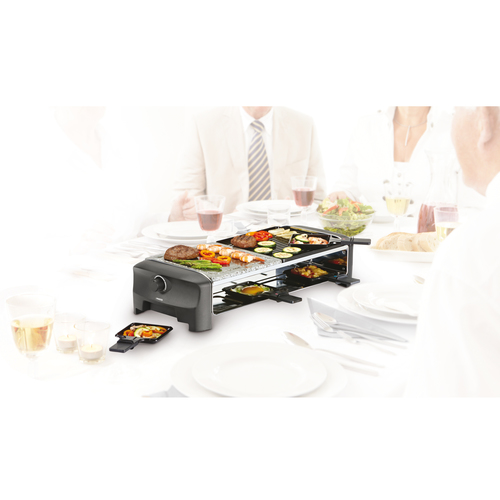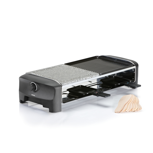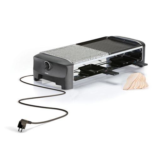 Beschreibung: | Der Princess 162820 Stone & Grill Party ist eine Kombination aus Tischgrill, Steingrill und Teppanyaki-Gerät. Die Bratfläche ist in eine hochwertige Steingrillplatte und eine wendbare Teppanyaki-Grillplatte unterteilt. Diese Grillplatte hat eine glatte und eine geriffelte Seite, so dass Sie zwischen Grill-, Teppanyaki- und Raclette-Funktion wählen können. Dieses luxuriöse Raclette-Set ist für 8 Personen geeignet.Hochwertige wendbare Grillplatte aus AluminiumgussRaclette ist eine traditionelle Schweizer Art des gemeinsamen Kochens, bei der man mit der Familie oder Freunden einen gemütlichen Kochabend zusammen an einem Tisch verbringt. Dabei muss sich niemand stundenlang in der Küche abrackern, sondern jeder kann sein eigenes Lieblingsgericht zusammenstellen, während man zusammen am Tisch sitz. Der obere Raclette-Grill besteht aus hochwertigem Aluminiumguss und kann gewendet werden. Auf der geriffelten Seite können Sie perfekte Steaks grillen, und auf der glatten Seite nach Teppanyaki-Art |