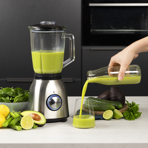 Beschreibung: | edelstahl gebürstet/schwarz1.000 Watt1.5 lIce-Crush-Funktion, PulsstufeEdelstahlgehäuse, GlasbehälterDieser leistungsstarke Mixer mit luxuriöser Edelstahloberfläche verfügt über vier verschiedene Geschwindigkeitsstufen und eine Impulseinstellung für zusätzliche Leistung. Mit dem 1, 5-Liter-Glasbehälter können Sie eine große Menge auf einmal zubereiten. Die Edelstahlklingen sind perfekt für die Zubereitung aller Arten von köstlichen Frucht- und Gemüsesäften, Smoothies, Cocktails und Milchshakes. Vier Geschwindigkeitseinstellungen Dieser Princess Edelstahlmixer mit einer Wattzahl von 1000 W hat vier verschiedene Geschwindigkeitsstufen. Daher kann er zum Mixen von weicheren und härteren Zutaten verwendet werden. Außerdem können Sie mit der Pulse-Einstellung problemlos Eis crushen. Haben Sie es eilig oder bleiben einige Teile immer wieder hängen? Kein Problem, durch die Pulse-Einstellung ist Ihr Smoothie noch schneller fertig und gibt Ihnen genau das Quäntchen Extra-Power, mit dem sich die Teile lösen. Glasbehälter mit einer Kapazität von 1,5 L Dank des abnehmbaren 1,5-Liter-Glaskruges können |