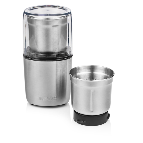 Beschreibung:Princess 221040 Universalzerkleinerer - Feucht und trocken - Edelstahl Das Kleinschneiden von Zutaten ist bei den meisten Menschen nicht gerade eine ihrer Lieblingsbeschäftigungen. Mit dem Princess 221040 Universalzerkleinerer wird sich das ändern. Die beiden abnehmbaren Behälter haben spezielle Klingen, mit denen man Kaffeebohnen mahlen oder Pesto zubereiten kann. Dank sicherem Push-Deckel-Betrieb ist der Zerkleinerer sehr benutzerfreundlich. Zwei abnehmbare Behälter Der Princess 221040 Universalzerkleinerer hat zwei Behälter und Klingen für feuchte und trockene Zutaten. Mit den Mahlklingen kann man Kaffeebohnen frisch mahlen oder aromatische Gewürzmischungen zubereiten. Der Zerkleinerungsbehälter hat vier Klingen, um Knoblauch, Gemüse und frische Kräuter fein oder grob zu zerkleinern, je nachdem, wie lange Sie das Gerät laufen lassen. Ideal für selbstgemachte Pestos, Kräuteröle und Currypasten. Einfacher Push-down-Betrieb Der transparente Deckel ist sehr einfach in der Handhabung und