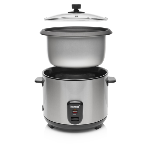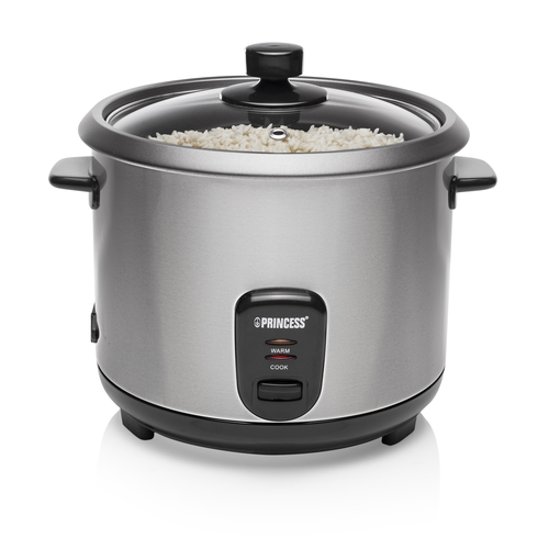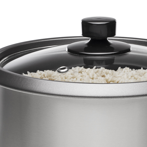 Rice Cooker Vollautomatischer Reiskocher für alle Arten von Reis. Verfügt über einen herausnehmbaren Innentopf mit Antihaft-Beschichtung und Glasdeckel. Komplett mit Betriebsanzeige und Wahlschalter zum Kochen oder Warmhalten des Reises. Vollautomatischer Reiskochtopf für alle Reissorten. Hauptmerkmale Technische Details Leistung 700 W Automatische Warmhaltung Ja Automatisches Kochen für frischen Reis Ja Automatische Programme Ja Volumen 1,8 l Teflonbeschichtet Ja Entfernbare Schüssel Ja Anzeigelicht Ja Trockengehschutz Ja Abnehmbarer Deckel Ja Kontrolltyp Knöpfe, Leiter Griff(e) Ja Einfach zu säubern Ja Warmhaltefunktion Ja Gehäusematerial Edelstahl Automatische Abschaltung Ja Verpackungsinhalt Messbecher Ja Reisschöpfkelle Ja Energie AC Eingangsspannung 230 V Gewicht & Abmessungen Tiefe 28 cm Höhe 23,2 cm Gewicht 2,2 kg Breite 28 cm Farbe Produktfarbe Edelstahl