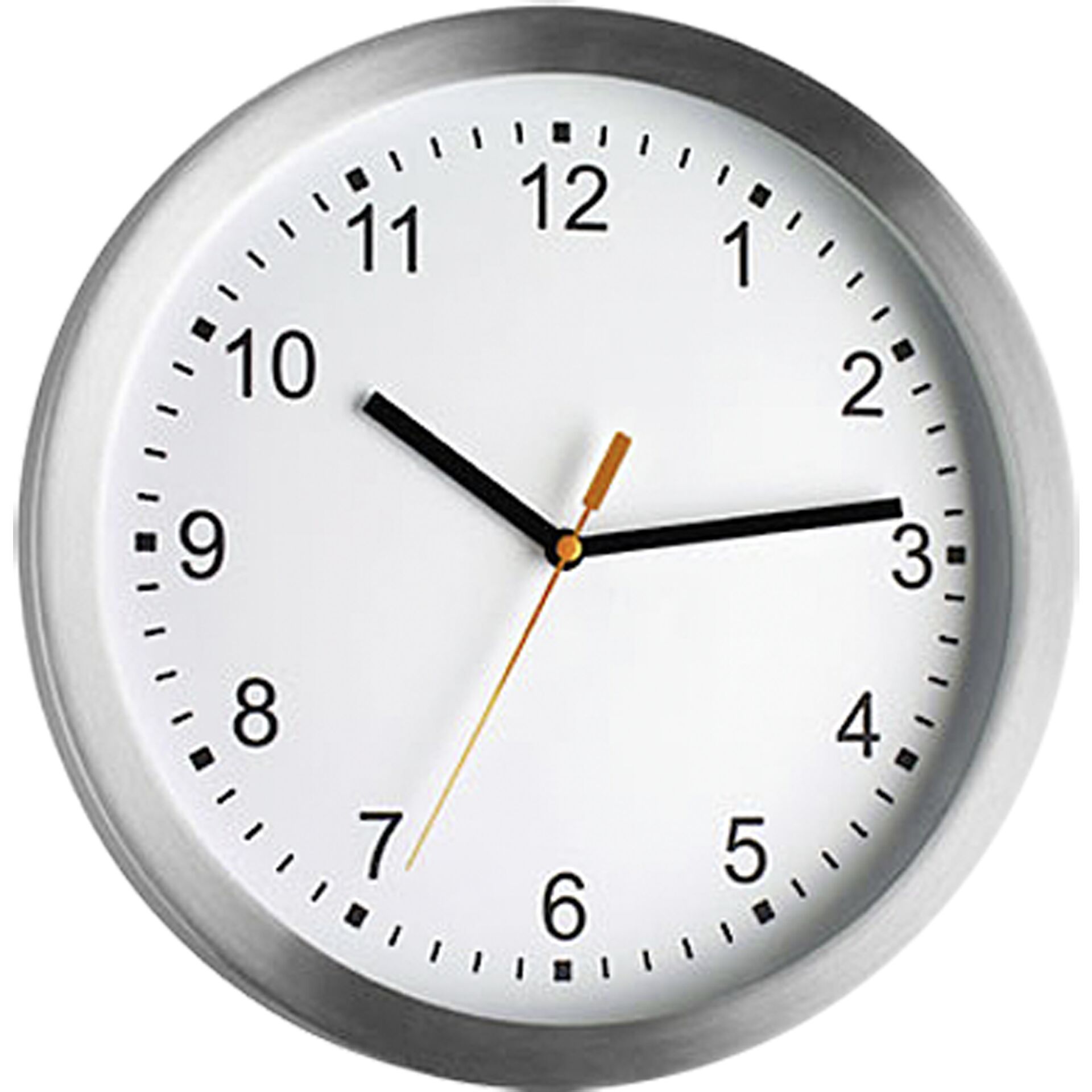 Description Simple wall clock by TFA, case made of brushed aluminium. Features glass cover incl. Battery 1.5 V AA Dimensions: x 295 mm x 41 mm Weight: 845 g Technical data Type Wall clock analog Projection No Wake-up light No Time zone setting No Radio No Silent sweep movement No Colour change No LCD display No backlight No Time Yes Selection 12h/24h display No date N One day of the week No Temperature display No wake-up function No Alarm tone Selectable No snooze function (Snooze) No Dual alarm (2 alarm times adjustable) No Power supply No battery(s) 1x Mignon (AA) Memory/buffer battery No color silver weight (g) 845