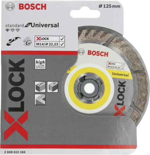 Kurzinfo: Bosch Standard for Universal - Diamant-Schneidscheibe - für universal building materials - 125 mm - X-LOCK Gruppe Elektrowerkzeugzubehör Hersteller Bosch Hersteller Art. Nr. 2608615166 Modell Standard for Universal EAN/UPC 3165140933834 Produktbeschreibung: Bosch Standard for Universal Diamant-Schneidscheibe Produkttyp Diamant-Schneidscheibe Geeignet für Universal building materials Durchmesser 125 mm Dorntyp 22.23 mm Ausführliche Details Allgemein Produkttyp Diamant-Schneidscheibe Geeignet für Universal building materials Durchmesser 125 mm Dorntyp 22.23 mm Max. unterstützte Geschwindigkeit 12250 U/min Sägeblatt Zahnhöhe 10 mm Schnittkerbe 2 mm Verschiedenes Verpackungstyp Pappbeutel mit Euro-Loch Kennzeichnung EN 13236