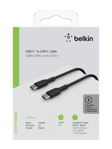 "usb-c/usb-c cable" von Belkin aus der Kategorie Zubehör Telefon ist mit einem 2 m langem Kabel ausgestattet, erhalten Sie mit 1 Stück(e) pro Packung und ist Schwarz.