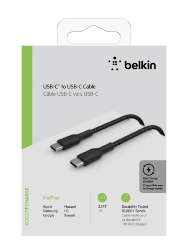 BELKIN USB-C/USB-C CABLE 1 m, Braided USB-C to USB-C, Black (CAB004BT1MBK)