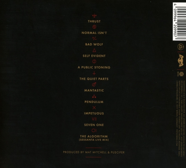 1.1 Thrust1.2 Normal Isn't1.3 Bad Wolf1.4 Self Evident1.5 Public Stoning1.6 Quiet Parts1.7 Mantastic1.8 Pendulum1.9 ImpetuoUs1.10 Seven One1.11 Algorithm |